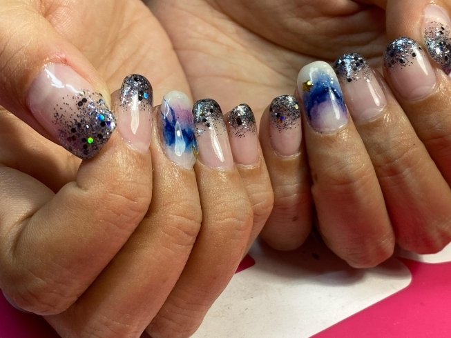 お客様ネイル 夏の夜 海 水面 シンプル 高知市ネイルサロンi Ll アイル 高知市旭北町ネイルサロンi Ll アイル