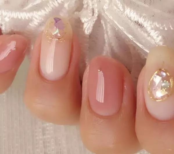ヌーディ シェル ストーン追加 ナチュラルネイル シンプルネイル シェルネイ Re Nail所属 Re Nail Kanaの ネイルデザイン ミニモ